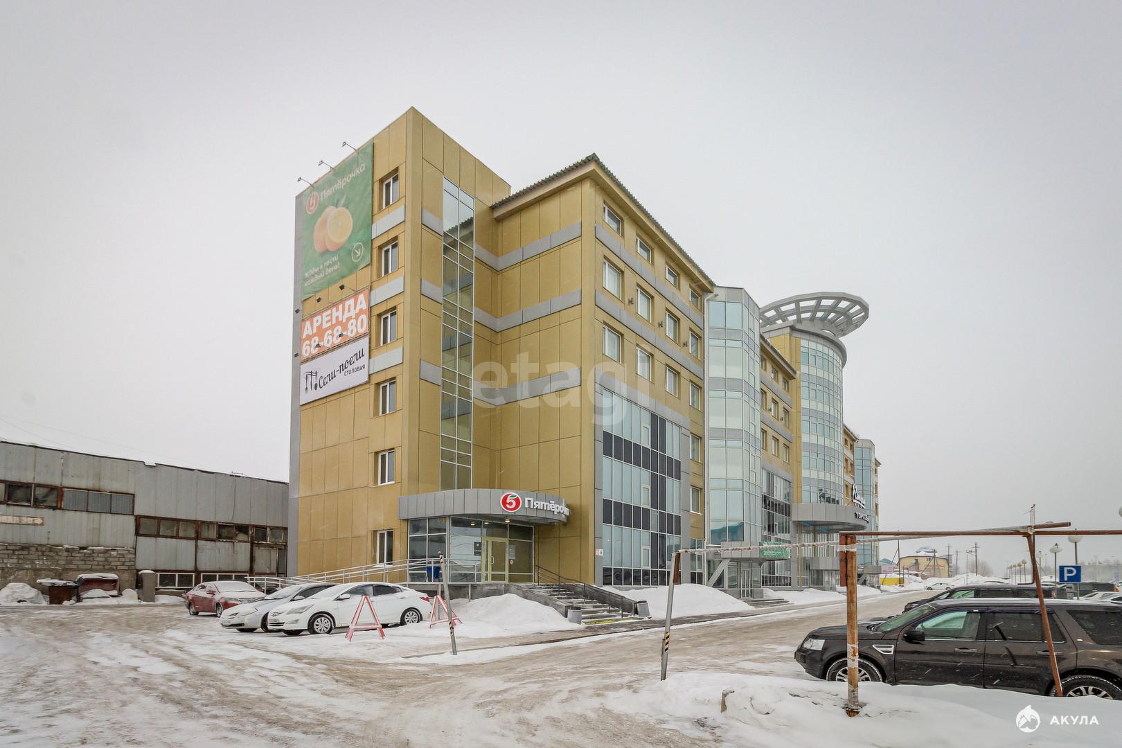 1 этаж - магазин Пятерочка (685 м2), отдельный вход, выполнен качественный ремон, договор заключен на 10 лет.